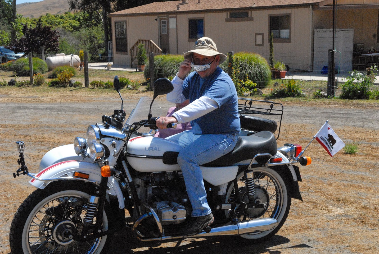 the California Central Coast. Hank put together a great afternoon of activities with two BBQ grills going full tilt by midmorning, two Scalextrics Slot car racing tracks complete with electric sidecars as well as a dirt track to demo one of his bikes and of course the afternoon blind sidecar slalom.